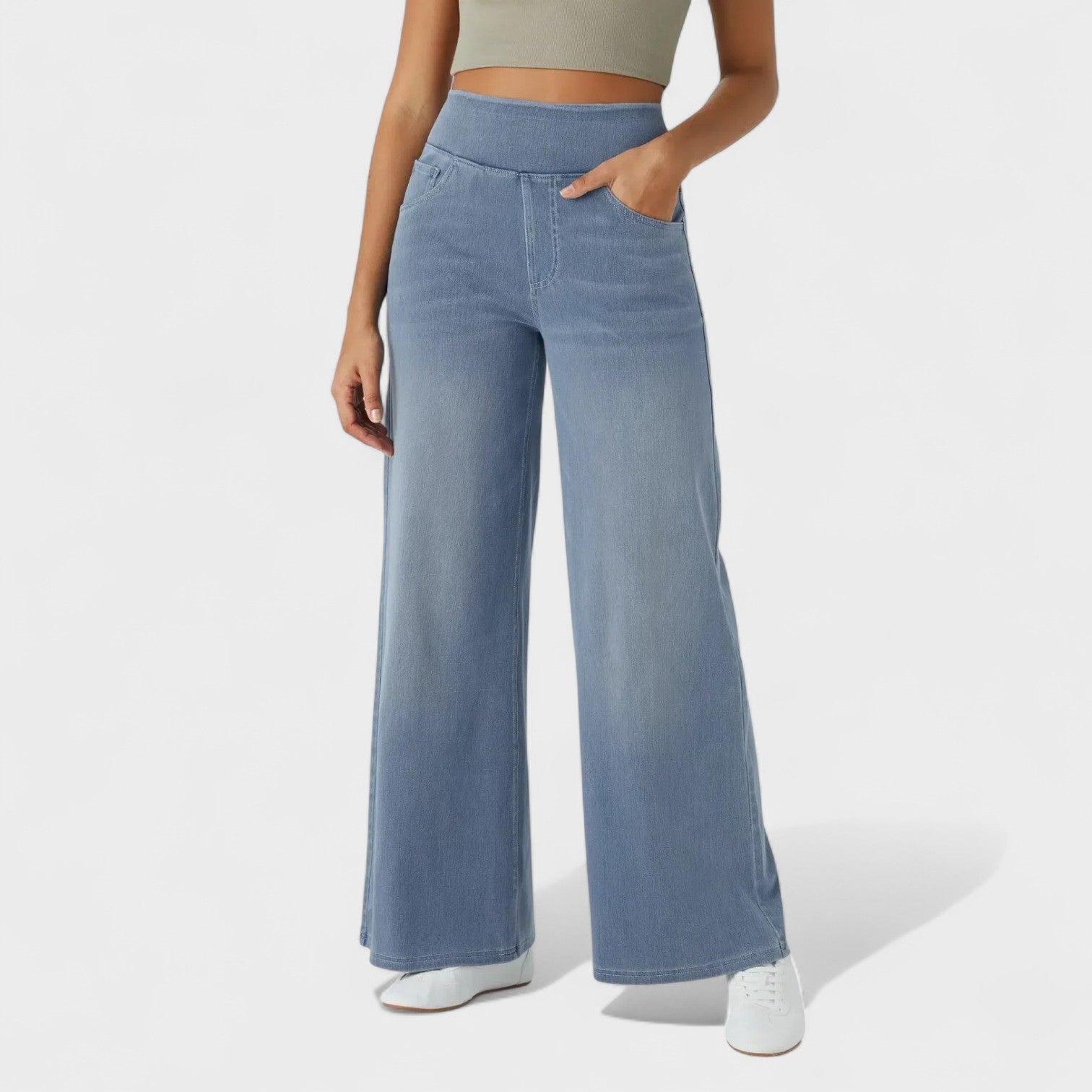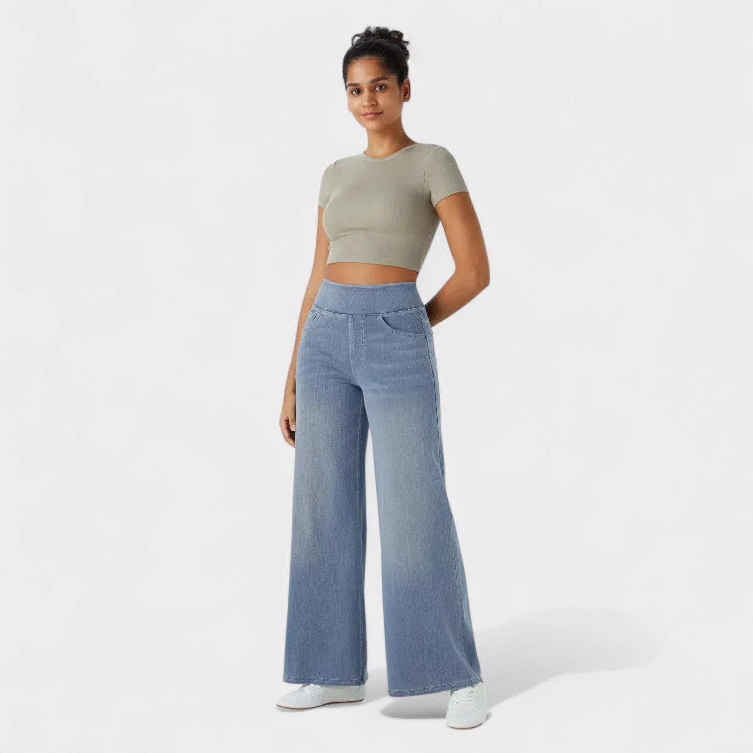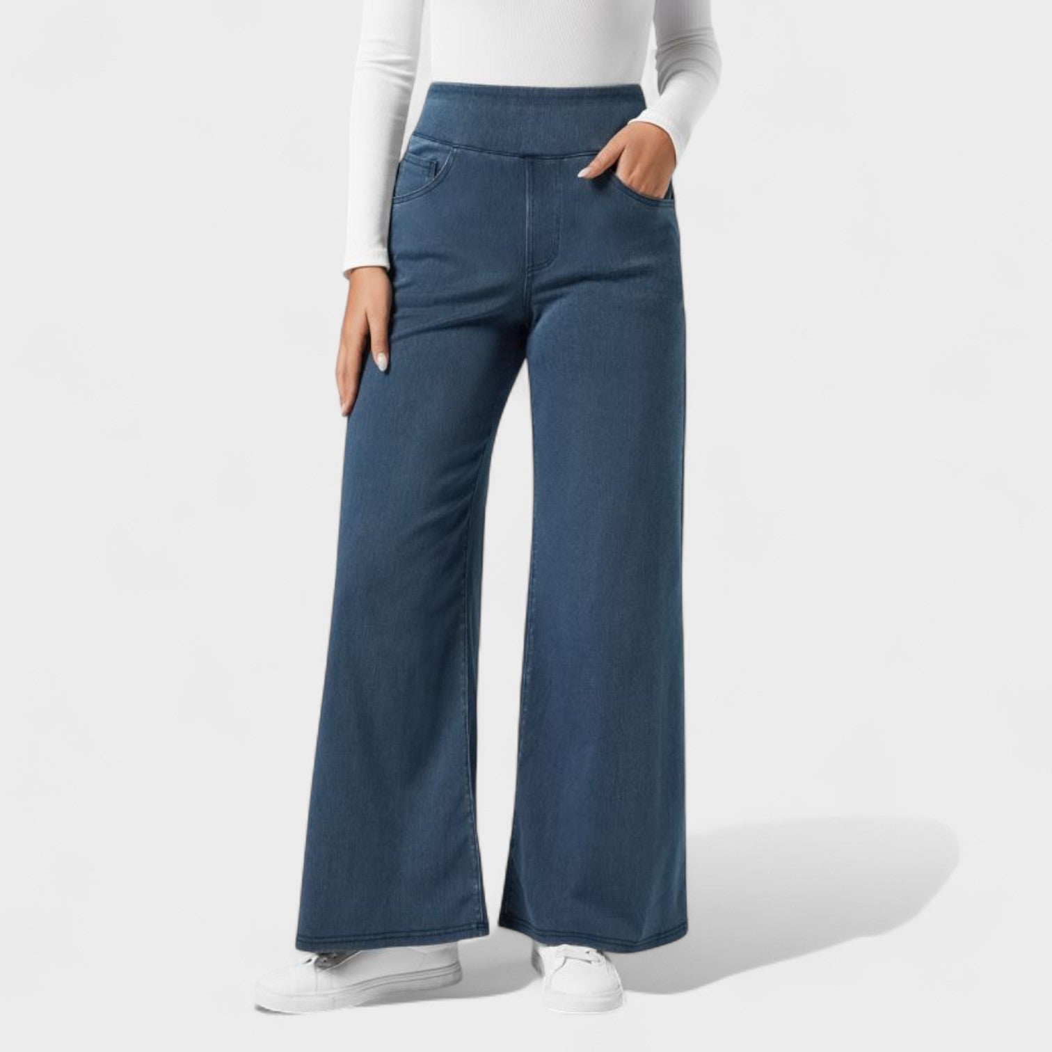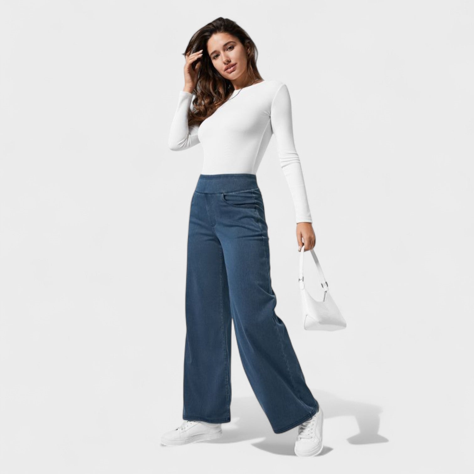 Elegantne široke traperice s mekim linijama, koje upotpunjuju svaki stil i odgovaraju različitim outfitima.