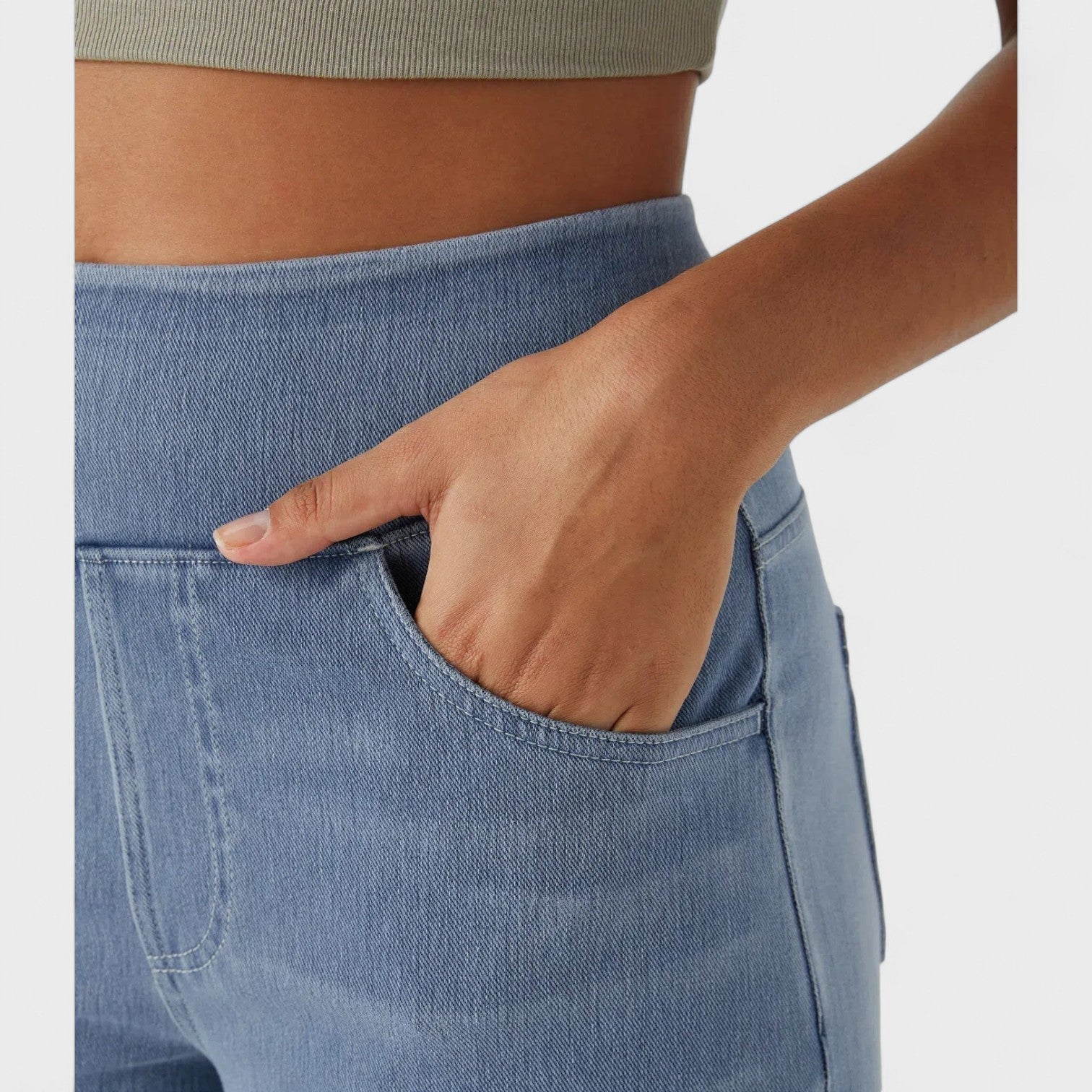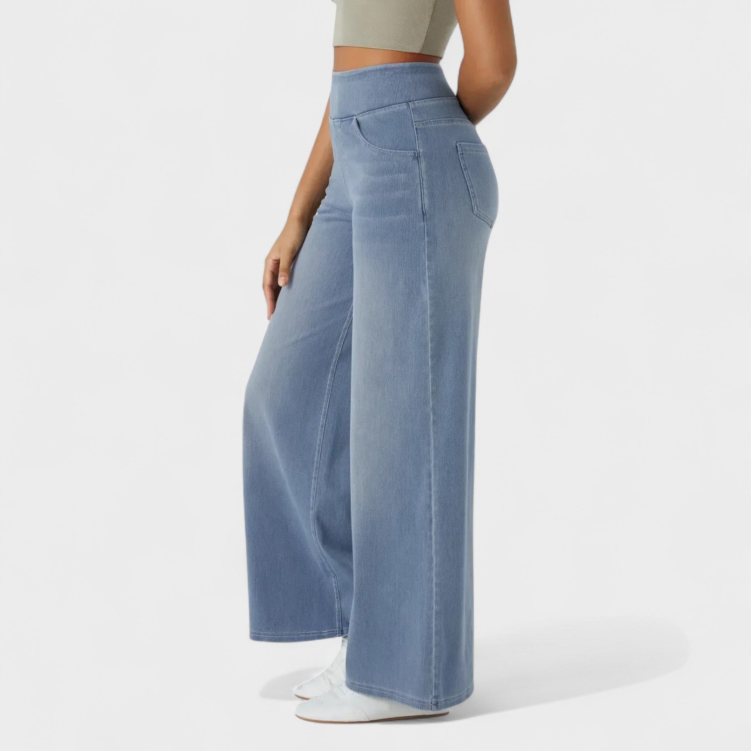 Zračni, mekani denim i blaga elastičnost osiguravaju udobnost tijekom cijelog dana. Visoki struk oblikuje bez stezanja, a silhueta ostaje laskava u opuštenim i elegantnim kombinacijama.