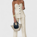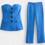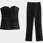 Sa prozračnim materijalom i slobodnim krojem donosi osjećaj laganosti, udobnosti i savršene prilagodbe tijekom cijelog dana. Top bez rukava s čistim rubovima daje laganost i moderni minimalizam, dok široke hlače oblikuju elegantnu siluetu i omogućuju slobodno kretanje.