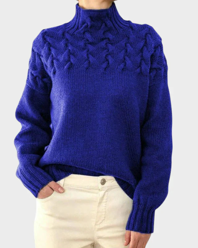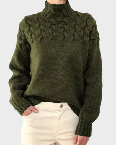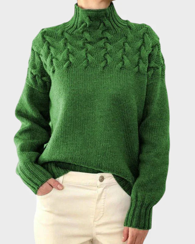 Prekrasna pletena struktura čini ovaj udoban pulover idealnim za slojevito odijevanje u hladnijim mjesecima, jer vas drži toplima bez kompromisa u vašem stilu.