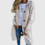 Udoban dugi kardigan u elegantnom i minimalističkom stilu upotpunjuje svaku odjeću i dodaje toplinu i stil.